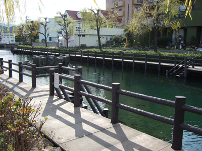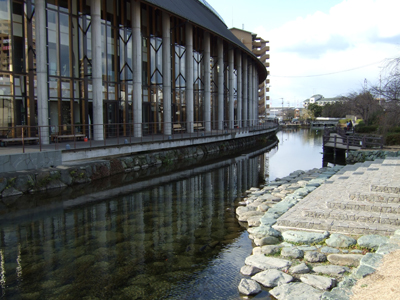 川の流れは産業情報支援センターの横を通ります。