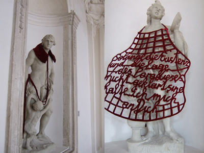 見慣れた大理石像も、変なもの(失礼)が付け加えられるだけで、