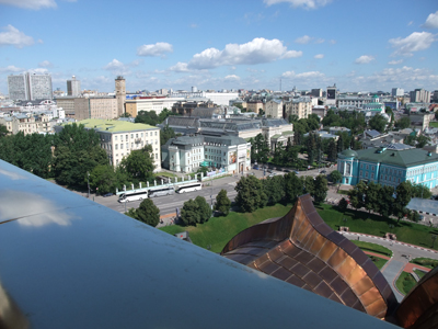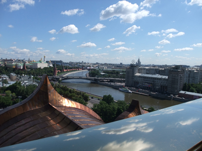 それはともかく、教会内部の見学の前に教会の上の回廊に連れて行ってもらえました。そこからは、モスクワ市内が一望できるという素晴らしいロケーション。