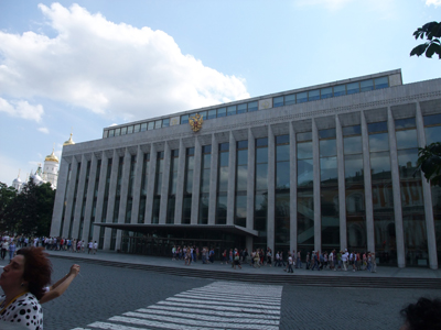 この近代的な建物はクレムリン大会宮殿です。なんともびっくりのミスマッチ。私ははじめここが大統領府かと思っていました。