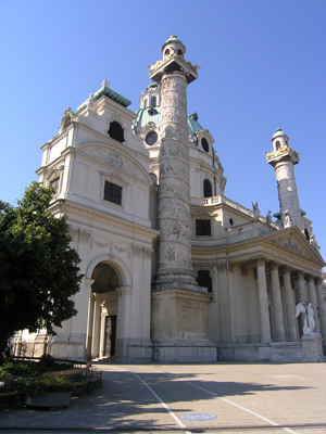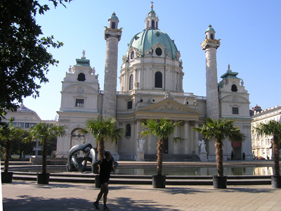 ホテルの近くにある、カールス教会はバロック建築の傑作だそうです。