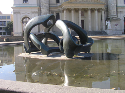 面白いことに、前にある池には、ヘンリー・ムーアの彫刻が置いてあります。
