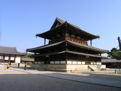 横にあるのは伝法堂です。聖武天皇の夫人の住宅を仏堂に改造したものです。