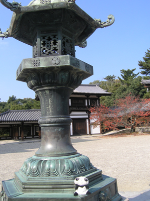 この大講堂前の燈籠は、元はまばゆいばかりの黄金色だったとか…。
