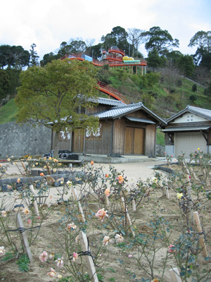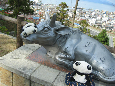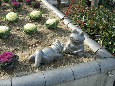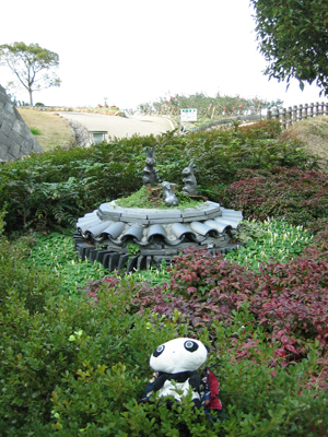 丘の上から、下の庭に降りる道すがら、干支にちなんだ像(といっても、すべて瓦製)が置かれています。