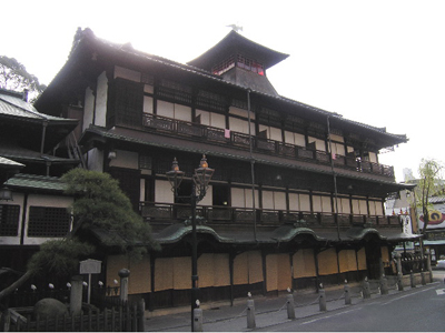 おそらく「千と千尋の神隠し」の湯屋のモデルの一つといわれる伊代愛媛の道後温泉本館に、影響をうけて作ったからではないでしょうか?