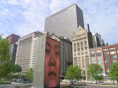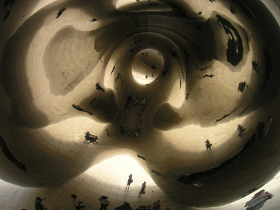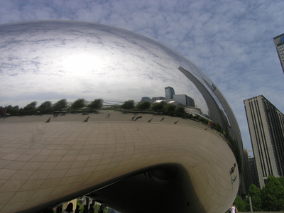 公園の周りを取り囲む摩天楼がきれいに映って。これは摩天楼が立ち並ぶシカゴならではのオブジェかもしれませんね。こちらは英国在住の建築家による作品だそうです。