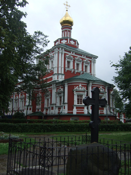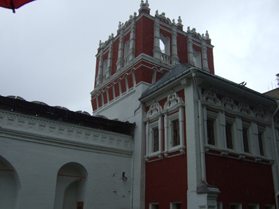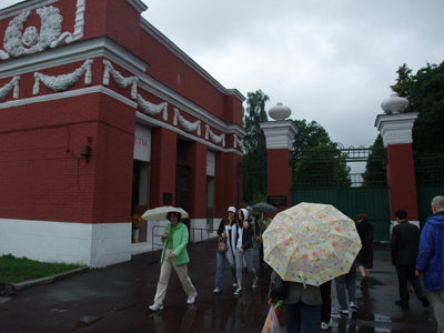 修道院と同様にノヴォデヴィチ墓地も赤い丈高い外壁で囲まれています。ここが入り口。