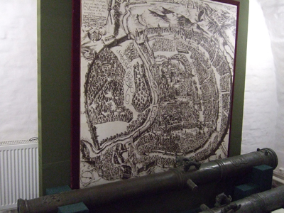 おそらくはこの教会が要塞として使用された時代の古地図と大砲です。