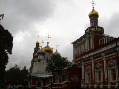 城壁の中を一歩入ると、銀色と金色のタマネギ型のキューポラを持った修道院が遠目に見えます。