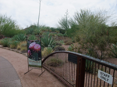 そしてサボテンの花の写真が載った看板を目印に、砂漠植物園に入っていきます。