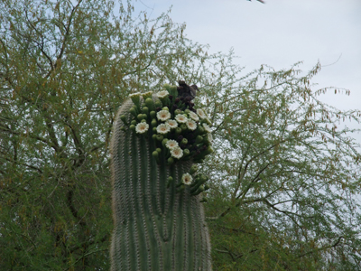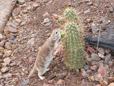 ということで花が咲いた巨大なサボテンにもきつつきがやってきていました。